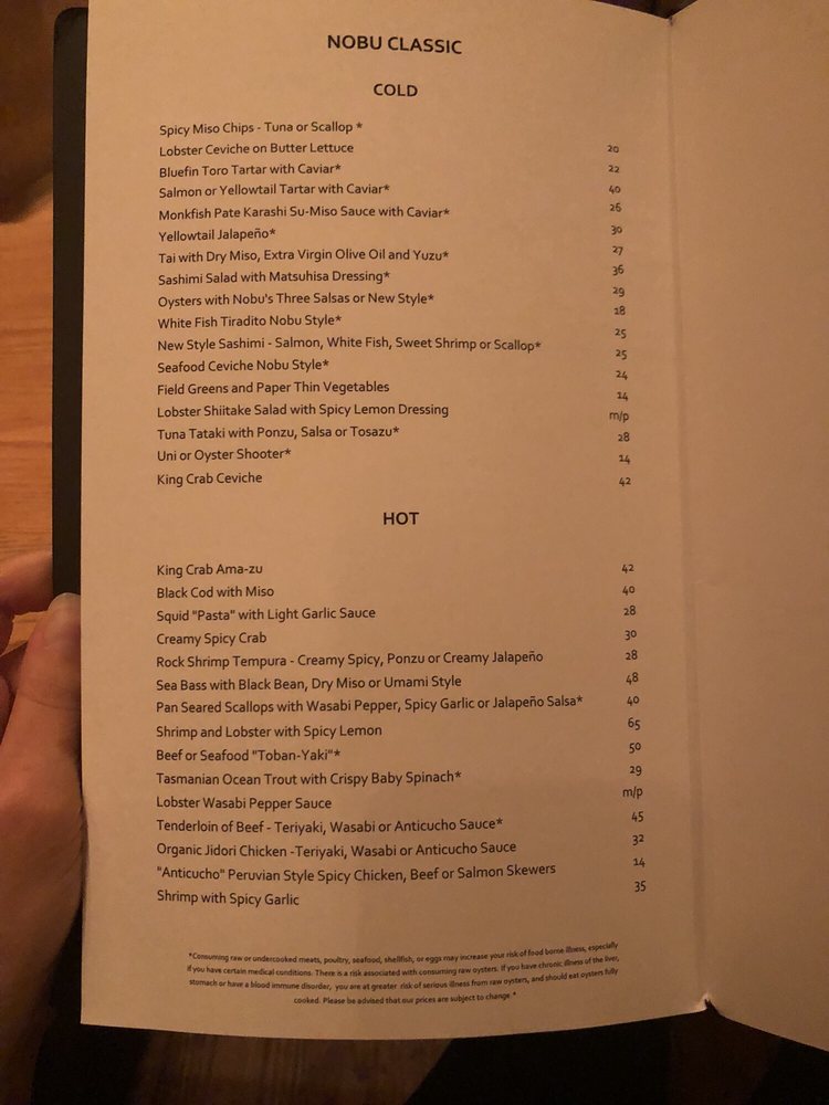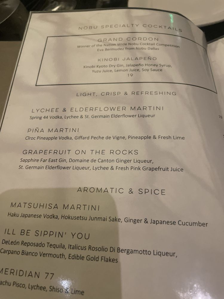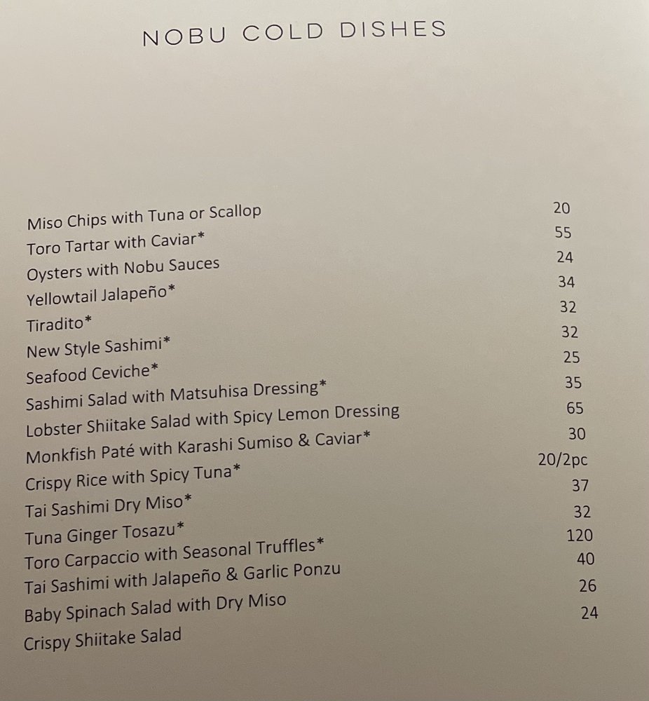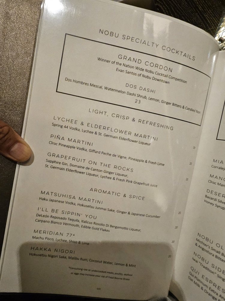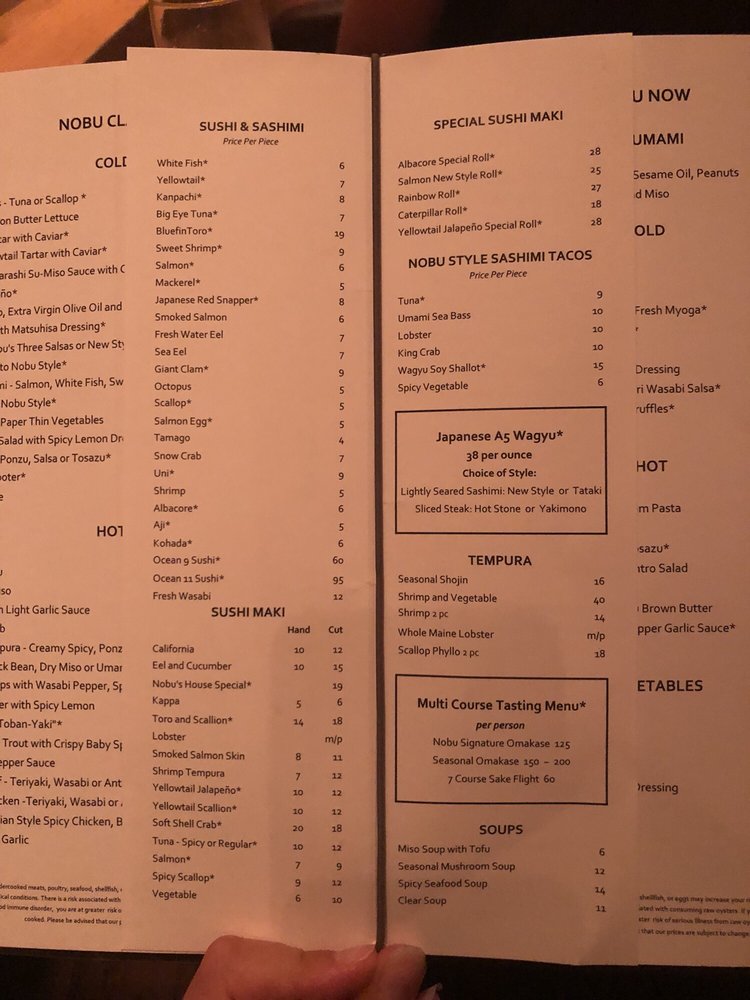 Introducing the menu at Nobu Las Vegas at Virgin Hotel, guests can expect a diverse selection of exquisite Japanese cuisine. From flavorful soups like Mushroom Soup and Lobster Miso Soup to refreshing salads such as Snow Crab Sashimi Salad and Cucumber Sunomono, the menu offers a wide range of options to satisfy every palate. Indulge in fresh sushi and sashimi choices like Tuna, Salmon, and Sea Urchin, expertly prepared by skilled chefs. Customers rave about the exceptional service and ambiance, making dining at Nobu a memorable experience. Don't miss out on signature dishes like Chilean sea bass with amazu ponzu sauce and Black cod butter lettuce for a culinary journey that will delight your taste buds. Nobu Las Vegas at Virgin Hotel promises a sophisticated dining experience that is worth every penny.